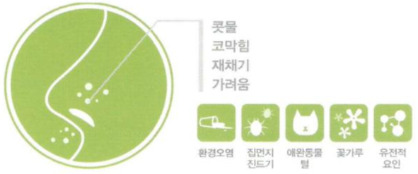 코 과민반응이란 코 점막이 특정 물질에 대해 과민반응을 나타내는 것을 말합니다. 코 과민반반응은 전 연령대에 걸쳐 고루 나타나고, 다른 종류의 과민반응을 동반하는 경우가 많으며, 유전적인 요인이 함께 작용하는 나타납니다. 코 과민반응은 열 및 전신상태 없이 콧물, 재채기, 코막힘에 가려움 증세가 더해지는 것이 특징이고, 약 일주일 동안 하루종일 증세가 유지되는 감기와 달리 수개월 혹은 연중 증세를 나타내며, 아침에 심하고 오후에 좋아지는 경우가 많습니다. 콧물의 상태가 맑고 가족 중 과민반응이 있는 경우가 많은 점이 특징입니다.